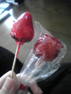 二つとも其の日のうちに食べきってしまいました。いちご飴の中の苺がとろとろに熟していておいしい~のですよ!どちらも大層美味しかったです。