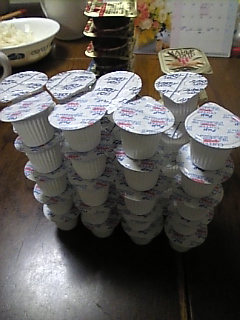 ガムシロとミルクポーション。奥にはメープルシロップとジャムの塔もあります。